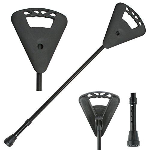 Color: Black The Flipstick Original Adjustable (Extended Package) is a single section mono-pod. It has a single piece aluminum stem and a molded plastic handle. Its walking seat height adjustment is in the foot of the shaft and has (3) 3/4" adjustments.The walking stick handle flips to a seat with the push of a button. As a seat, a person transforms themselves into a very stable tripod: Its height is determined by the angle on which the "Flipstick Original-Adjustable" is placed. The assembly can safely support 280 pounds. The non-slip rubber foot will cope with most indoor and outdoor surfaces. "Flipstick Original -Adjustable" comes with a 1 year hassle free replacement warranty from DeVersified Innovations, a company based in the USA.