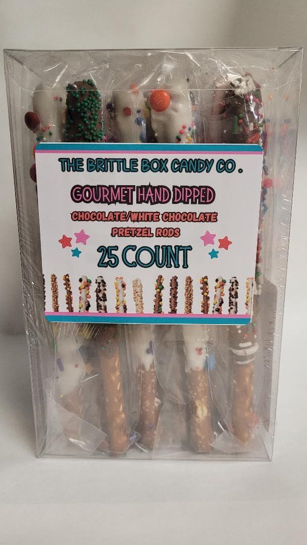 - Variety of Toppings Enjoy a mix of toppings, including toffee, sprinkles, chocolate candies, coconut, nonpareils, and more, all on milk or white chocolate pretzels.
