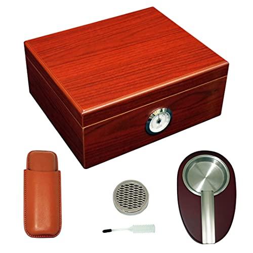 Cigar Desktop Humidor Giftset has an elegant Rosewood Finish, Holds up to 50 Cigars,