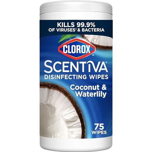 Clean and disinfect your home while enjoying the captivating, long-lasting scent of Coconut and Waterlily with these bleach-free, all-in-one cleaning wipes. Clorox Scentiva Disinfecting Wipes kill 99.9% of viruses and bacteria, including the COVID-19* Virus, in 15 seconds with the power of Clorox clean. These multi-surface cleaning wipes feature a clear-drying formula that powers through grease, soap scum and grime, so you can tackle any surface with confidence. Clorox Scentiva Disinfecting Wipes even prevent bacteria growth* for up to 24 hours. Germs and messes occur on more than kitchen counters and bathroom surfaces. Safely wipe down garbage cans, sinks, toys, remotes and appliances, or clean up car spills. Clorox Scentiva scents are well-crafted, curated, inviting blends that will elevate your cleaning experience. Do not flush. *Kills SARS-CoV-2 on hard, non-porous surfaces. Use as directed for other germs. Prevents growth of odor-causing bacteria on non-food contact surfaces.
