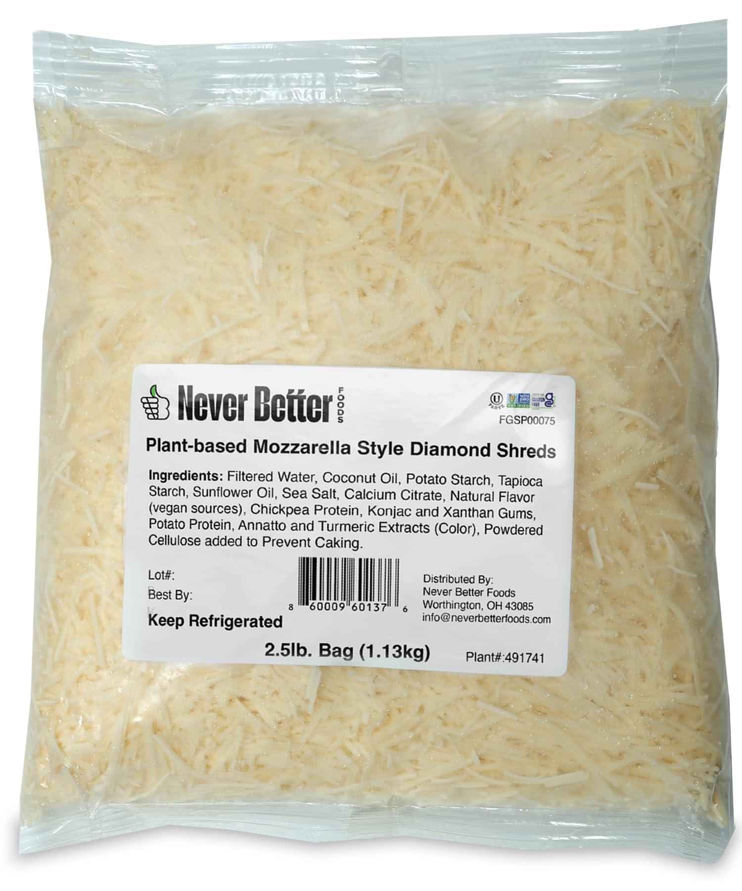 - Free from Allergens: Our vegan mozzarella cheese shredded is free from gluten, soy, egg, peanut, and other allergens. It's non-GMO and ideal for dietary restrictions.