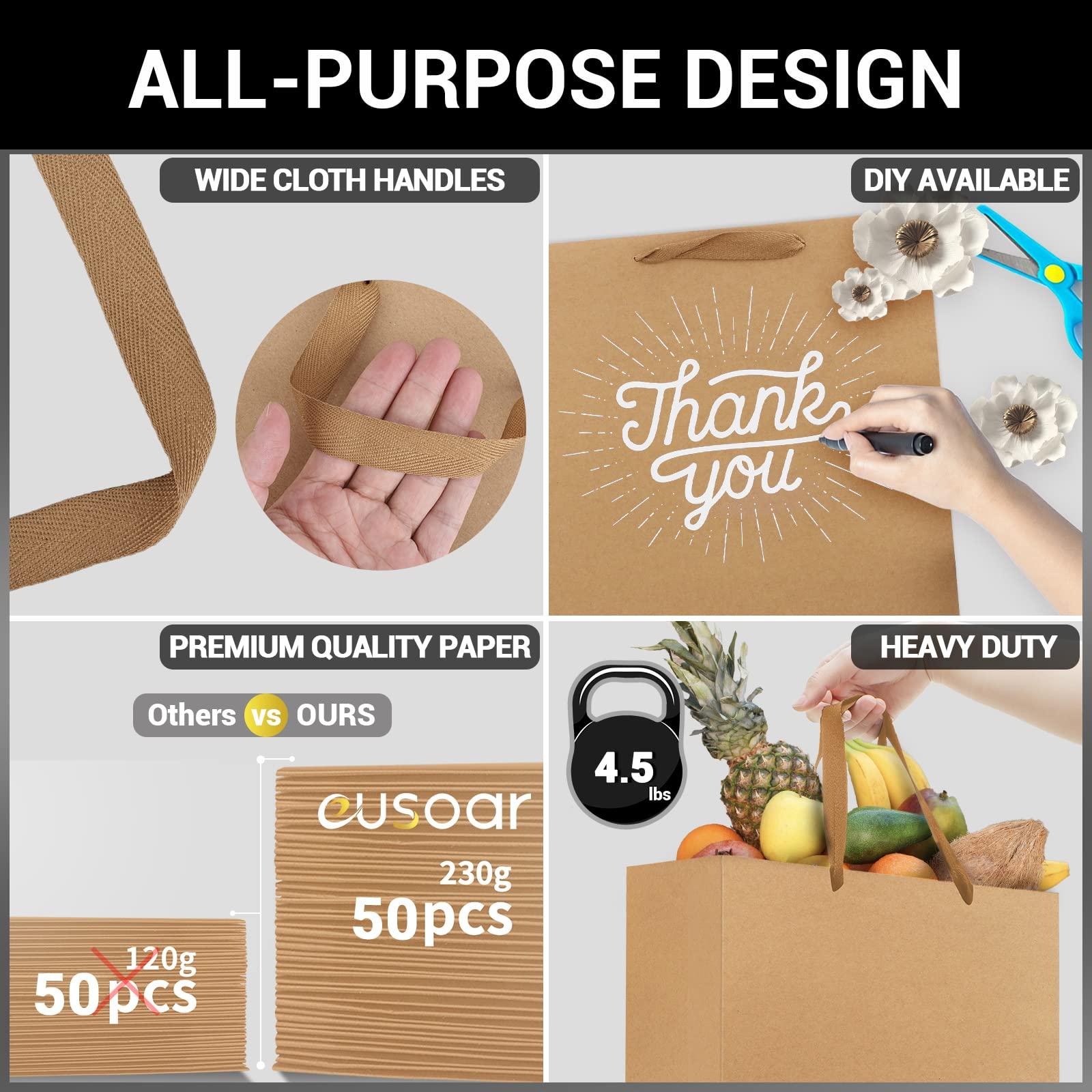 - Sturdy Cloth HandlesUpdated attached widening cloth handle, which is stronger than normal paper handle, and also provide you a more comfortable feeling on heavy load.
