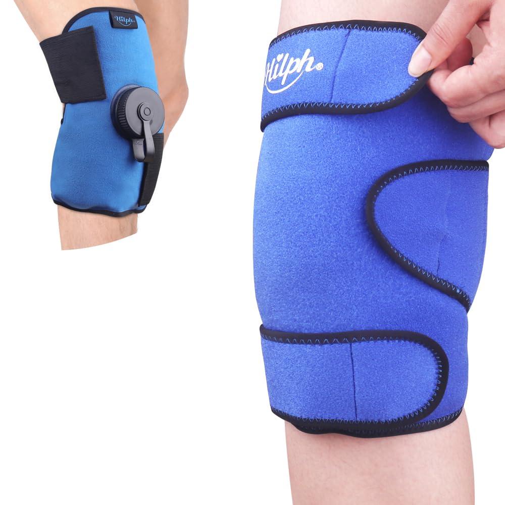 - [Innovative Design]: Hilph knee ice bag wrap for injuries features an innovative concept with one-piece, hand-free refillable ice bag design that achieves instant and comfort relief, long-lasting coldness for up to 2 hours. Snugly fit the curve of your knee and enjoy instant pain relief without advance freezing, just need to add ice cubes or crushed ice in the ice bag.