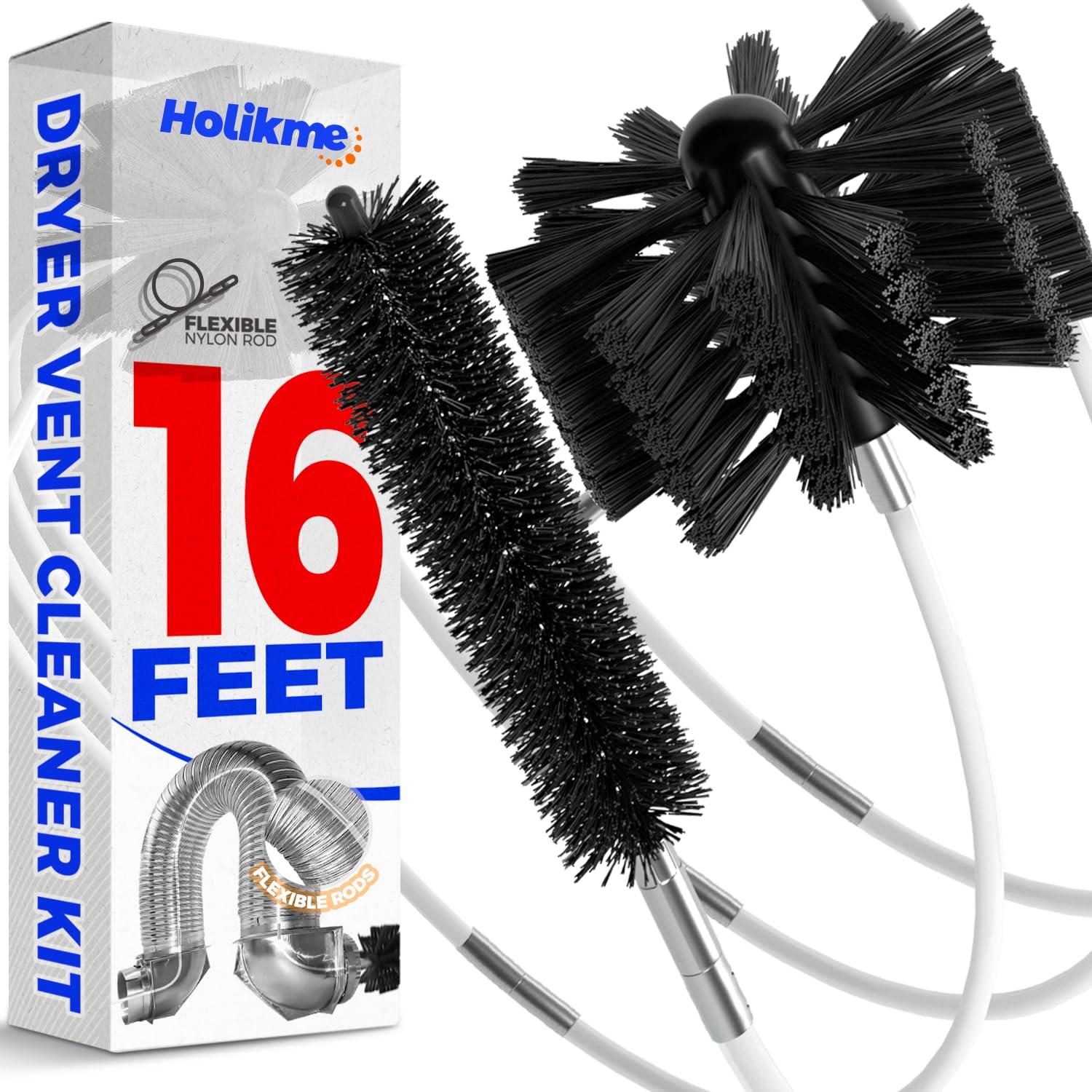 Holikme 16 Feet Dryer Vent Cleaning Brush Kit, Lint Remover,Fireplace Chimney Brushes, Extends Up to 16 Feet, Synthetic Brush Head, Use with or Without a Power Drill