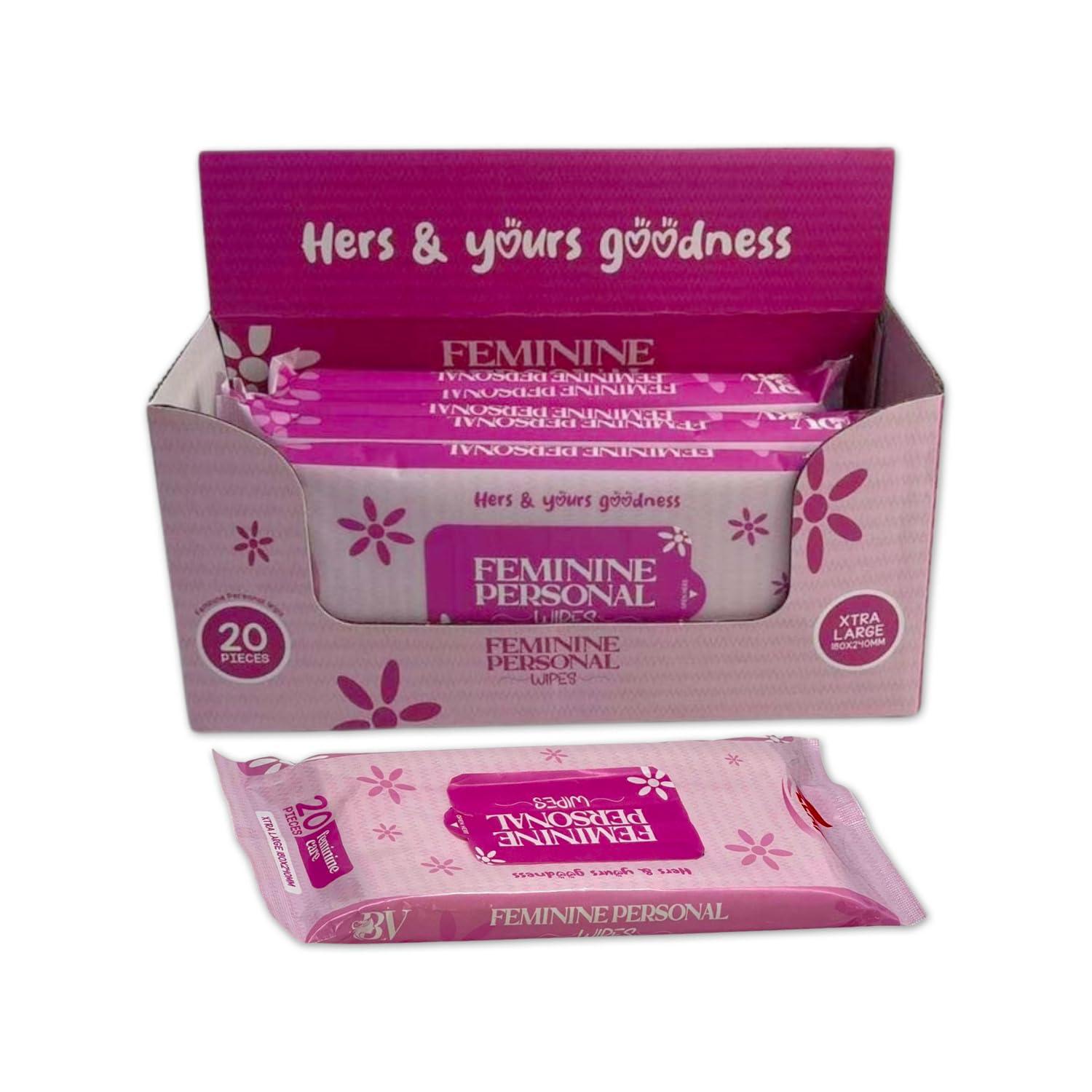 Introducing our Feminine Personal Wipes, the ultimate solution for feminine hygiene on-the-go. Each pack contains 100 large travel feminine wipes, ensuring thorough cleansing and freshness wherever you are. Crafted with plant-based ingredients like Aloe Vera, chamomile, cucumber, and Witch-hazel, these body wipes for women are not only gentle on your skin but also help maintain pH balance. The fragrance-free formula is perfect for sensitive skin, and these wipes are eco-friendly and biodegradable, making them an ideal choice for personal cleansing. Suitable for external use only, guarantees safety for regular everyday use, pH balanced. Keep yourself feeling clean, confident, and cared for with our Feminine Personal Wipes. 1) 20 large wipes for feminine care 2) Hygienic with balanced pH 3) Plant-based ingredients: Aloe Vera, chamomile, cucumber 4) Includes Witch-hazel for freshness 5) Eco-friendly, Fragrance-free formula Take charge of your hygiene with every wipe!