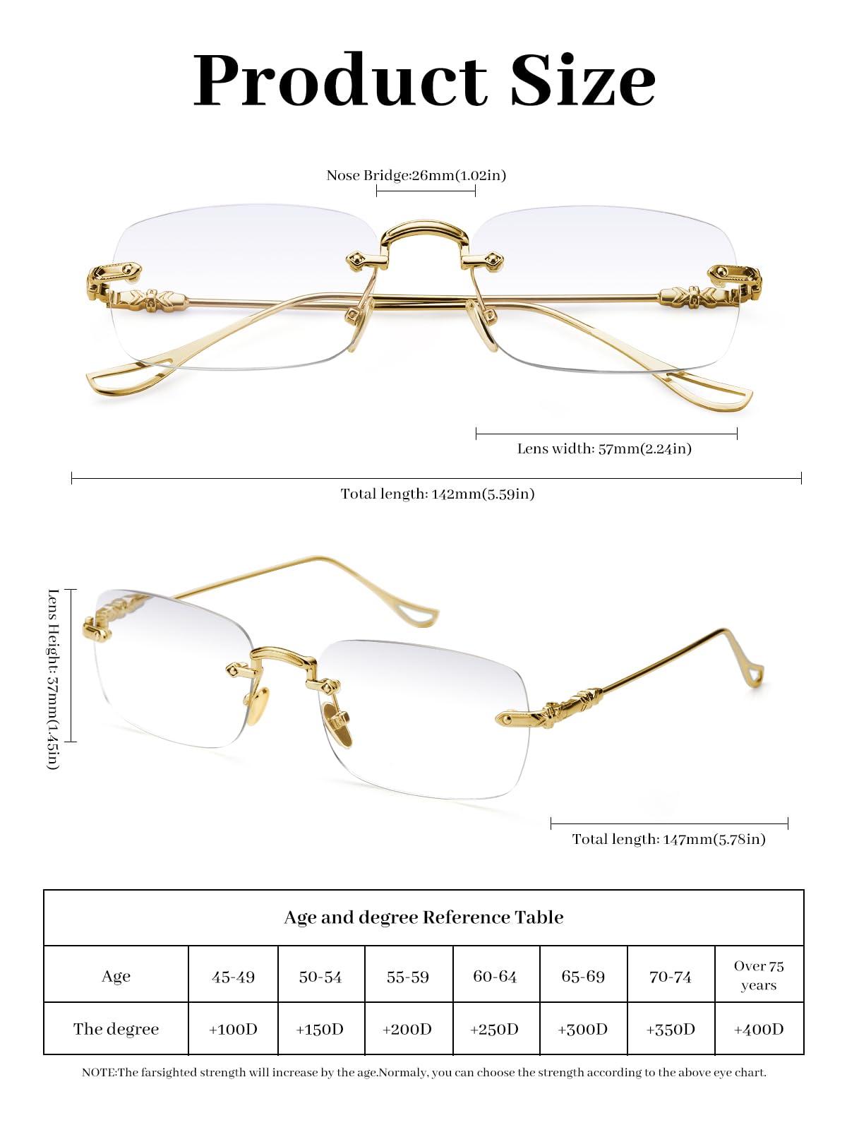 - Worry-free Service: You will get stylish rimless reading glasses*1,glasses case*1,clean cloth*1,screwdriver*1,bookmark*1,brand manual*1,If you have any questions with the product,just contact us,we will provide you 1 year of high-quality service for returns, exchanges, or worry free refunds.