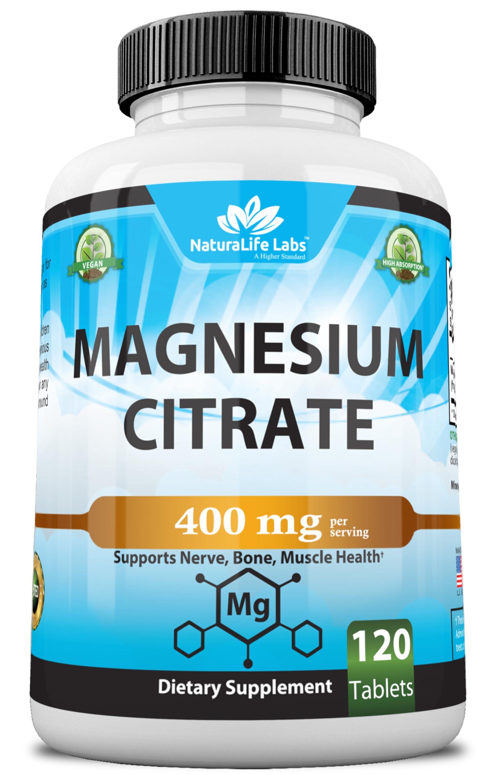 Magnesium Citrate 400 mg - High Potency Elemental Magnesium Essential Mineral for Heart, Muscle, & Digestion Support Non-GMO - 120 Tablets