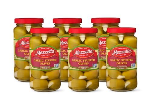 - OLIVE MEETS GARLIC: Mezzetta Garlic Stuffed Green Olives are one of our top-selling items for a reason; Halkidiki olives pair with freshly picked garlic, add flavor to cocktails, charcuterie or snacks; (6) 6-ounce jars