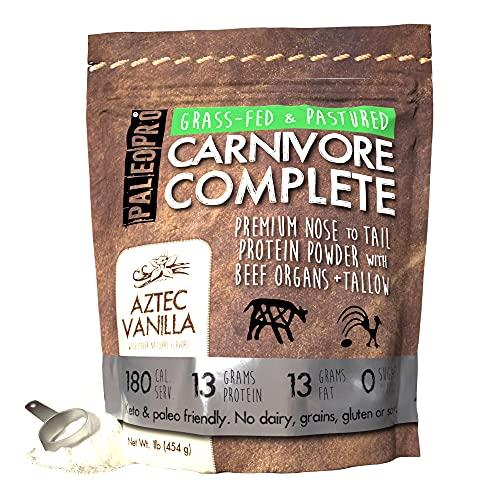 In the land of epic protein powders, there is a new and powerful player! Animals in the diet are an essential part of human dietary health, and our commitment to this principle has never been stronger. Our new nose to tail protein powder ventures where few have dared with the addition of premium quality grass-fed beef organs & tallow all in the convenience of a delicious shake. Paleo Pro Carnivore Complete Premium Nose to Tail Protein Powder provides 13g of protein per serving and contains no dairy, grains, glutens, soy or sugar. Free of added hormones, antibiotics, pesticides and preservatives, this Keto & paleo friendly protein powder features a delicious Aztec Vanilla flavor. This is not your father's protein powder...but we guarantee a distant ancestor is smiling.