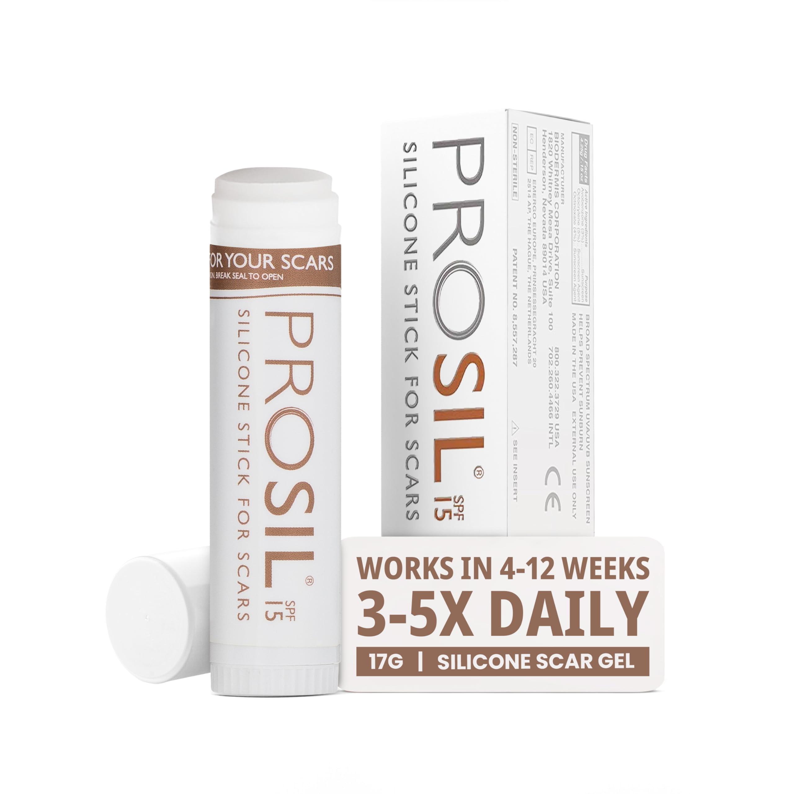 ProSil Silicone Scar Gel Stick with SPF 15 Patented Scar Treatment in a Mess-Free, Compact Glide-On Stick - Made from Premium-Grade Silicone - Gentle on All Skin Types, Including Kids - 17g
