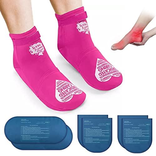 Reusable Cold Therapy Socks, Gel Ice Pack for Feet Heels Injuries Swelling, Hot and Cold Therapy Socks for Plantar Fasciitis Neuropathy Chemotherapy Pain Relief for Foot Ankle (Pink)