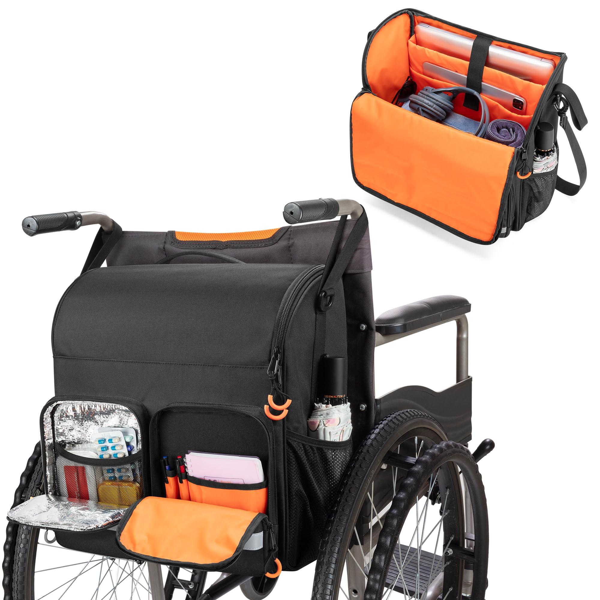 - Spacious Room: The main compartment with 4 inner-wall pockets is large enough for blanket, clothes, aid transfer sling, wheelchair poncho, and more; the bag for wheelchair features 2 padded layers for ipad and up to 15.6 inch laptop separately