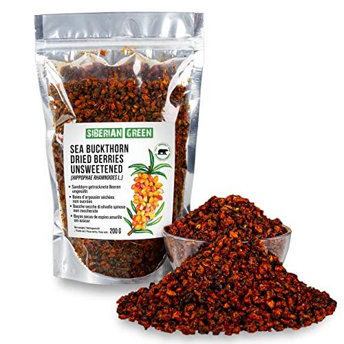 Siberian Sea Buckthorn Dried Berries 7.06 oz (200 g) Unsweetened 100% Raw Natural Wild Harvested Hippophae Fruit, No Additives, High Omega-7, Sports Bars, Yogurt, Smoothie, Snacks