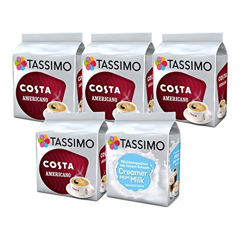 Tassimo Costa Coffee Bundle - Costa Americano/Milk Creamer - 5 Packs (64 Drinks)