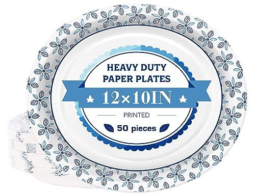 - Perfect Large Paper Plates SizeOval Plates 12 x 10 inch 50 Pack for bulk value .12 inch disposable dinner plates can be used for breakfast, lunch, and dinner, and the ideal size for formal meals, snacks, desserts, and more, and will hold sandwiches, cakes, pizza, hamburgers, pasta, and more